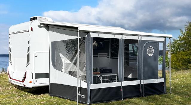 Luo suojaa matkailuvaunuihin markiisin alle tyylikkäällä markiisiteltalla