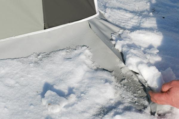 Grâce aux matériaux très résistants, toit à double pente qui permet à la neige d’être facilement évacuée, bavette au sol extra-large, armature résistante en acier, points d’attache des sardines réglables et matériaux de fenêtre adaptés aux températures les plus extrêmes, le sas Winter résiste – même dans la pire tempête de neige.