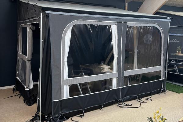 Buddy-frontstycket dras med dragkedja fast i Buddy sidapaneler när du vill skapa lä eller behålla värmen en svalare dag. De stora fönstren framtill ger fri utsikt mot naturen. Fönstren kan öppnas nedåt med dragkedja och användas som en verandalösning med den medföljande verandastången. Frontstyckena finns i fem olika bredder (270, 320, 370, 420 och 470) och passar till markiser från 3 meter och uppåt.
