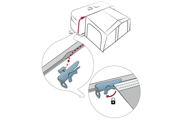 Med Safe Lock får du en enkel och effektiv lösning för att förhindra att förtältet glider längs tältlisten – till exempel vid blåsigt väder. Safe Lock monteras direkt i tältlisten på båda sidor om förtältet och fungerar som ett fysiskt stopp som håller tältet säkert på plats. Safe Lock är tillverkad i rostfritt stål och kan sitta kvar på husvagnen – även under körning och i fuktigt väder.