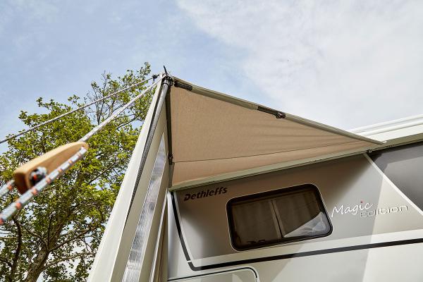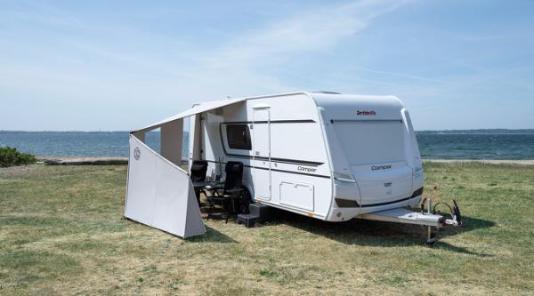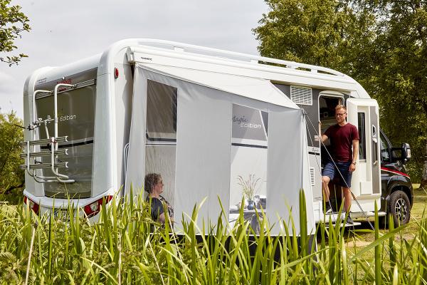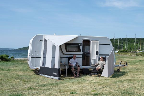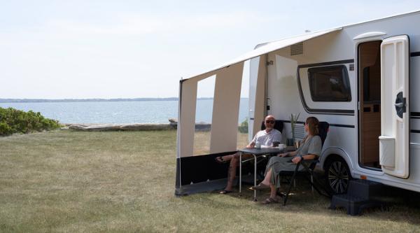 Create a cosy and sheltered corner with the Cosy Corner Levo. Perfect for a quiet moment in the shade or a relaxing coffee break in front of your caravan, motorhome or van. Cosy Corner Levo is designed to be extremely easy to set up - it can stand with just a single pole and be moved along the caravan rail or wind out canopy rail for optimal positioning.