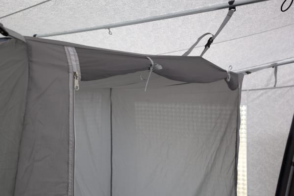The perfect sleeping compartment for the kids or guests. Made of a dark grey material to keep the light out. To create the best conditions inside the sleeping compartment, there’s a mosquito net and pvc floor. Great ventilation, and minimum rising damp.