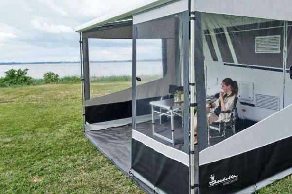 Create a cosy outdoor area in front of your caravan or motorhome with Wind Front, which easily attaches to your roll out awning for extra shelter and comfort. Wind Front is available in widths of 120 or 220 cm and fits caravans/vehicles with a mounting height of 245-270 cm.