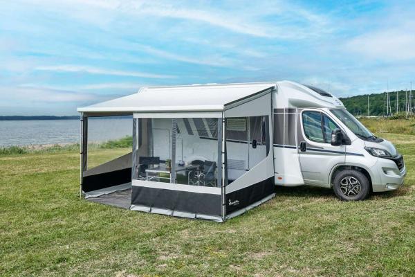 Create a cosy outdoor area in front of your caravan or motorhome with Wind Front, which easily attaches to your roll out awning for extra shelter and comfort. Wind Front is available in widths of 120 or 220 cm and fits caravans/vehicles with a mounting height of 245-270 cm.