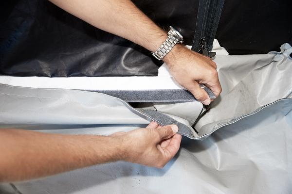Korkeareunainen vahva PVC-lattia Camp-let Basic-, 2GO- tai Dream-malleihin. Helppo kiinnittää tarranauhalla.